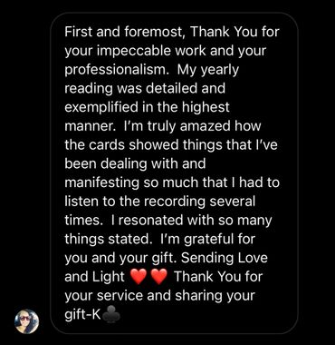 This option is for those who want an in-depth personal cardology reading. With purchase you will receive a 15 minute audio recording from me interpreting your birthcard's life spread. This is for those those who want a complete understanding of their birthcard and the cards that were dealt to them for life aka the life spread. This is not a full year reading. I only interpret the cards from your life spread.